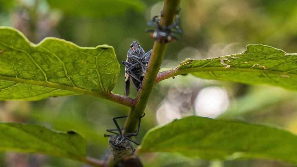 These invasive bugs are in the category of plant-hoppers. They hop from one plant to another to feed on their sap, affecting over 70 species.