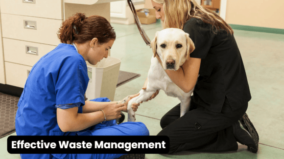 Effective waste management constitutes one of the most important constituent elements of sustainable veterinary care. The kind of waste generated by veterinary clinics varies, ranging from medical waste to plastics, and paper products. A full waste management plan with a focus on recycling and proper disposal of hazardous materials should be developed.